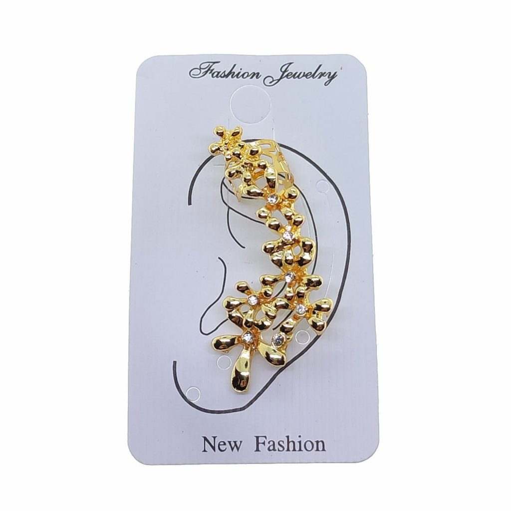 Altın Renk Çiçek Model Taşlı Kıkırdak Küpe – 2383