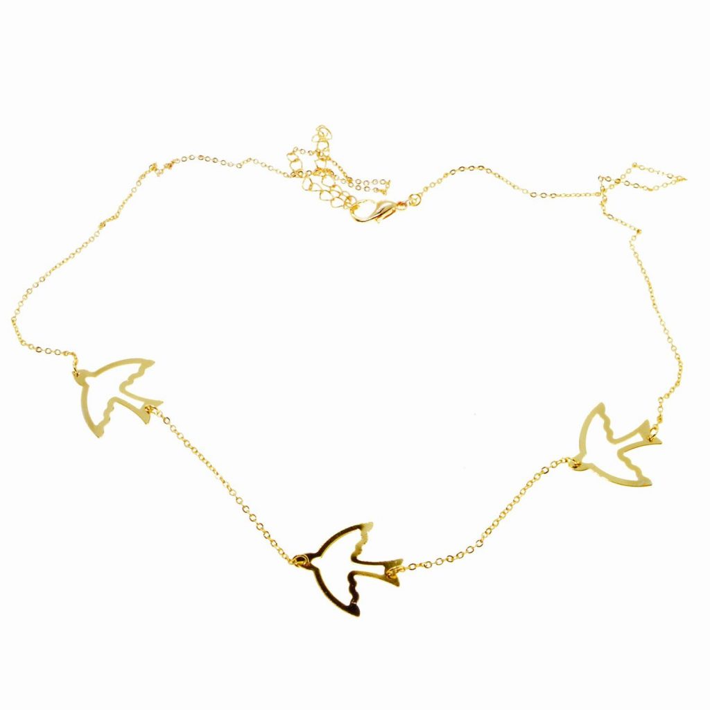 Altın Renk Üçlü Kuş Model Zirkon Kolye – 2361