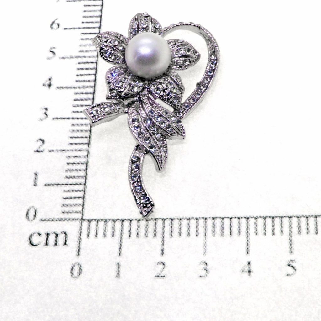 Gümüş Renk Çiçek Model İncili Broş – 2355