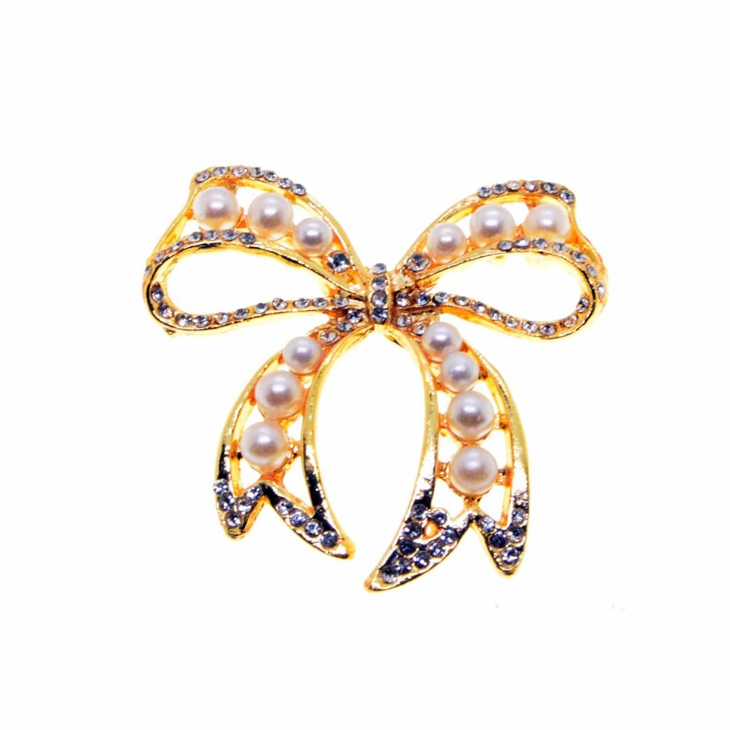 Altın Renk Fiyonk Model İncili Broş – 2346